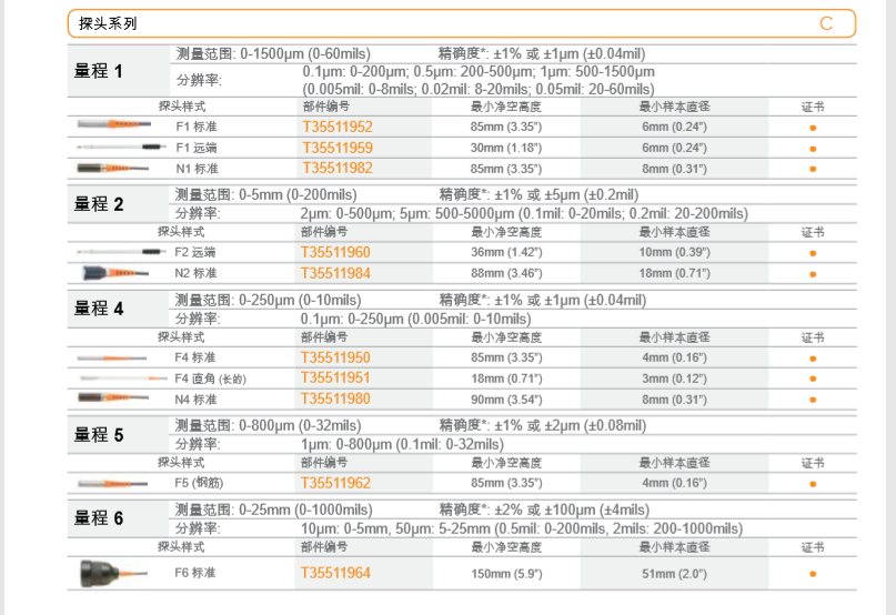 Elcometer355鐵基和非鐵基探頭 的各種探頭模塊能使 Elcometer 355 涂層測(cè)厚儀全面、靈活地適應(yīng)所所有的測(cè)量用途。根據(jù)要求,探頭模塊可自由互換,在鐵(F)和非鐵(N)金屬基體上都可以。在各種涂層和基體上,大多數(shù)探頭模塊的讀數(shù)度可以達(dá)到±1%。遠(yuǎn)端探頭從 410mm (16”)延伸至 1100mm (43”)。