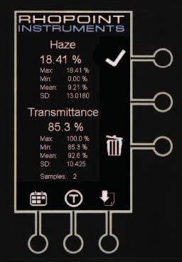 測試結束時,在屏幕上顯示霧度和透射率的百分比。
